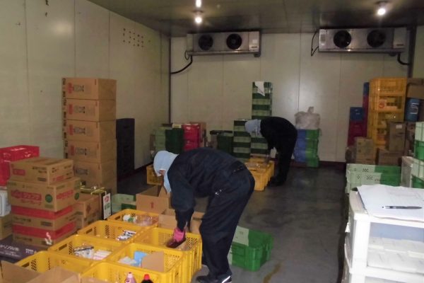 専用リストを見ながら配送先ごとに業務用食材の仕分けを行う業務です。